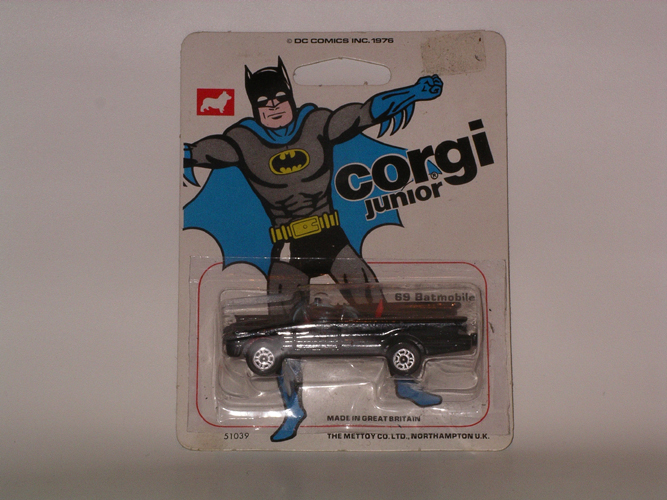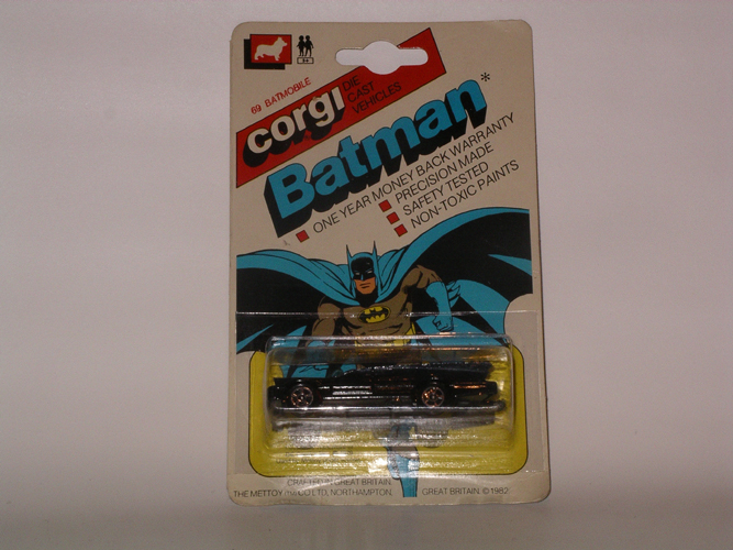 Corgi Junior Batmobile with tall warranty card from 1982. Sealed.