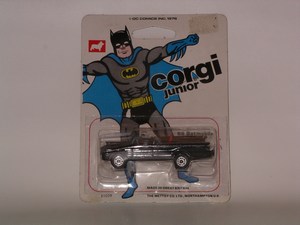 Corgi Junior Batmobile with standing Batman graphics. Sealed.