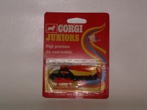 Corgi Junior Batcopter in rare standard packaging with no Bat graphics. Sealed. Dated 1973.