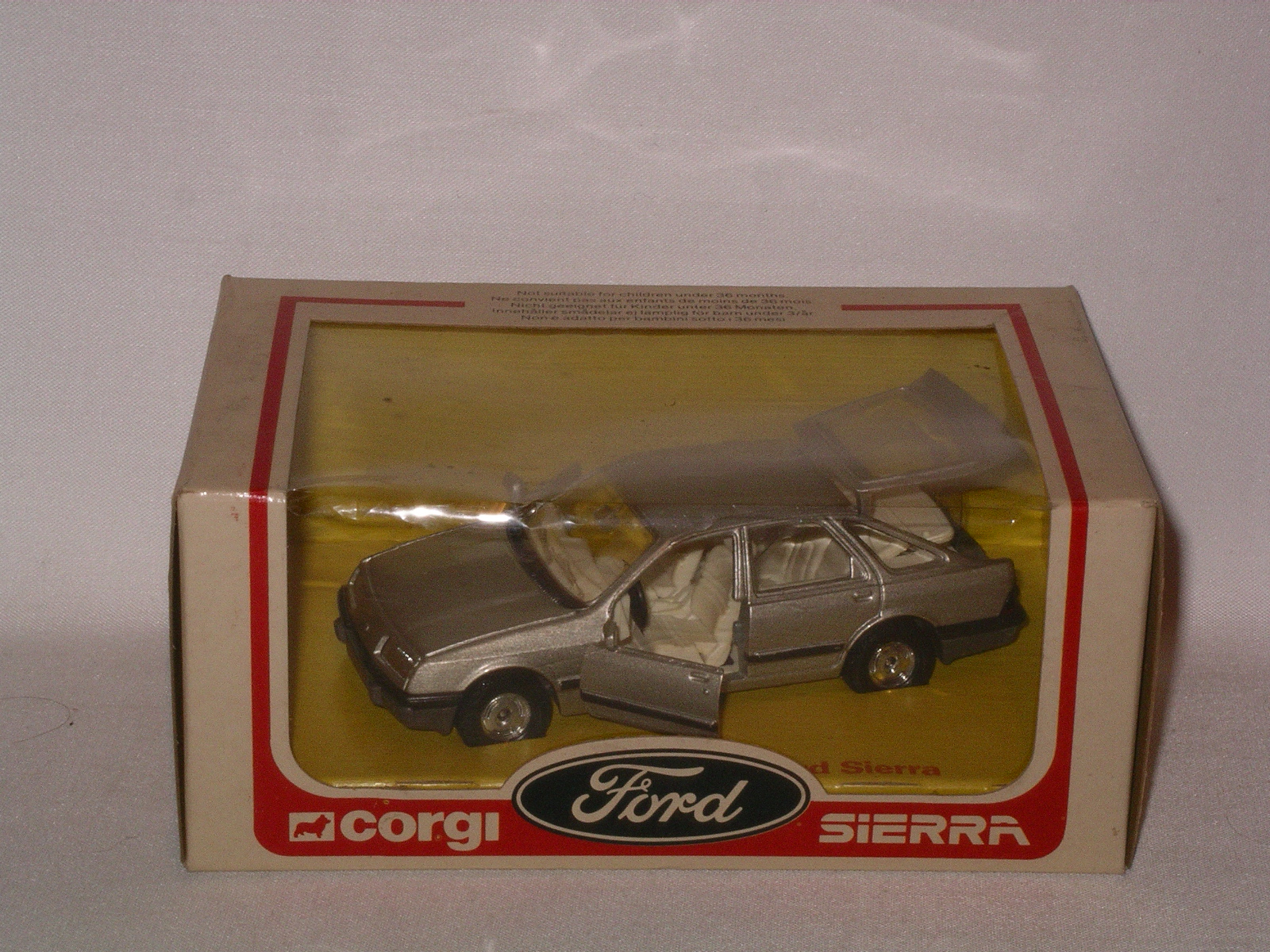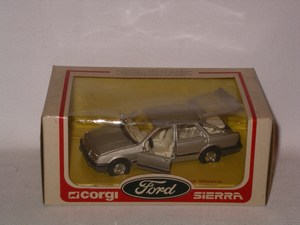 Corgi Ford Sierra 2.3 Ghia. 1982 with full FORD logo and GHIA logo on box. Silver. Unopened but some box wear.