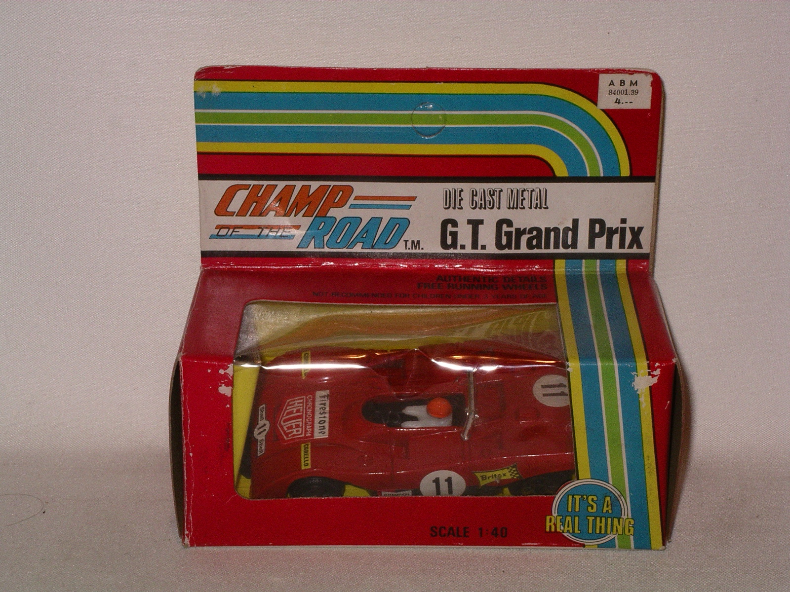 Champ of the Road by Universal Products of Hong Kong. 1:40 scale Ferrari GT race car from 1970’s. Unused model but box has some wear.