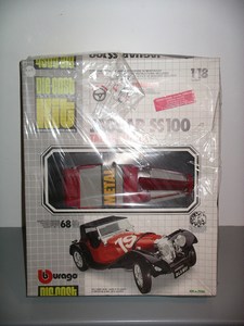 Burago Jaguar SS100 kit.1:18 scale. Never opened, shrink wrap has some splits.
