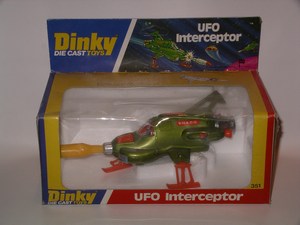 Dinky UFO Interceptor. Old shop stock but some wear to box.
