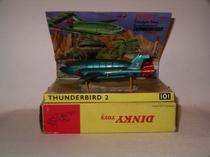 Dinky Thunderbird 2 & 4. The sea green version,complete but e mail for full condition report.