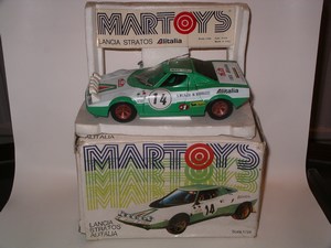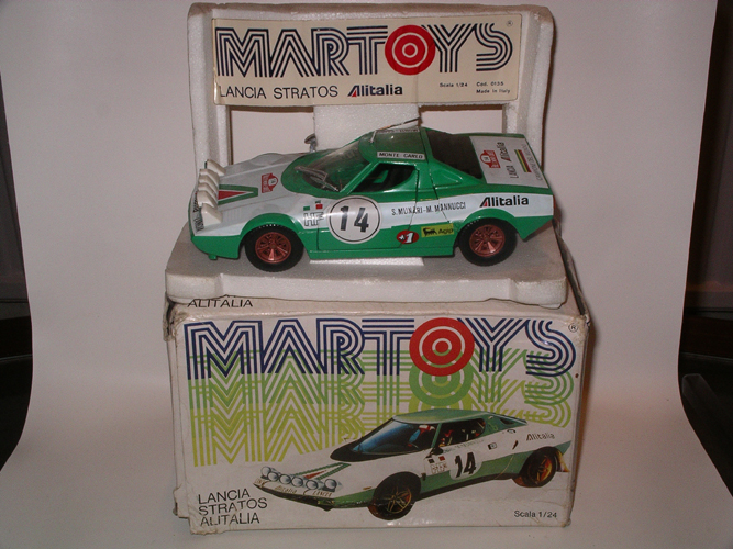 Martoys Lancia Stratos Alitalia rally car. 1:24 scale. Box is worn.
