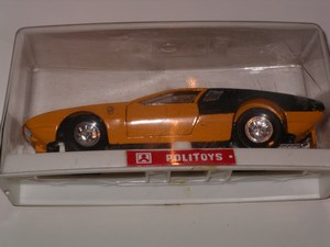 Politoys DeTomaso Mangusta 5000 Ghia. 1:25 scale, 7 inches long. Maybe in wrong box but fits in very well.