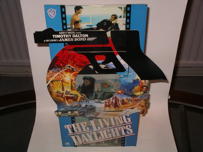 James Bond The Living Daylights video shop promotionalStandee. 16 inches tall with sliding gun barrel logo.