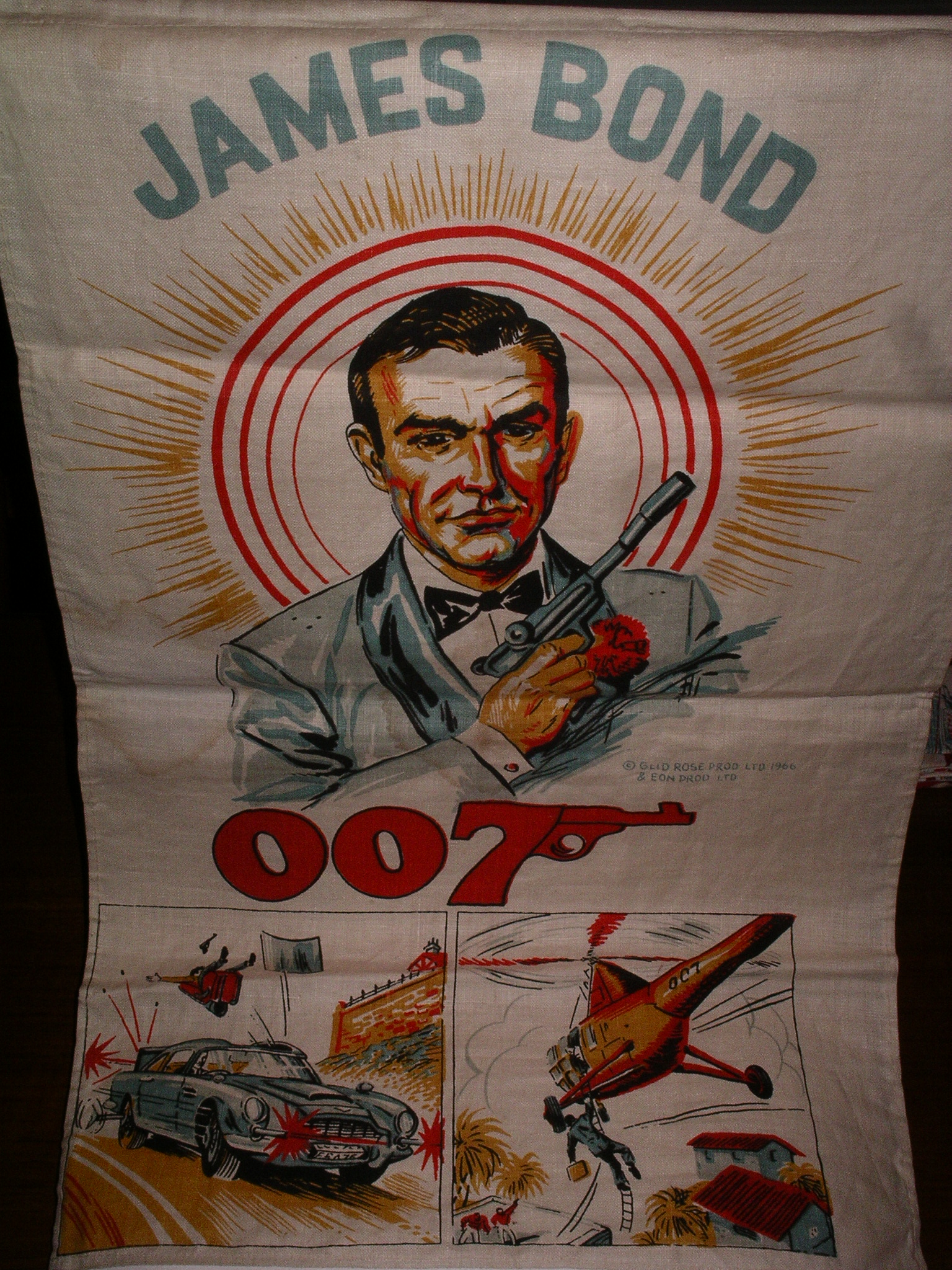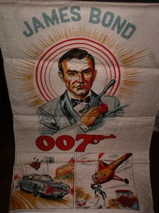 James Bond Banner. 1960’s. Very rare bedroom banner from USA. Wonderful artwork of Connery and the Aston Martin.