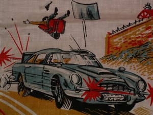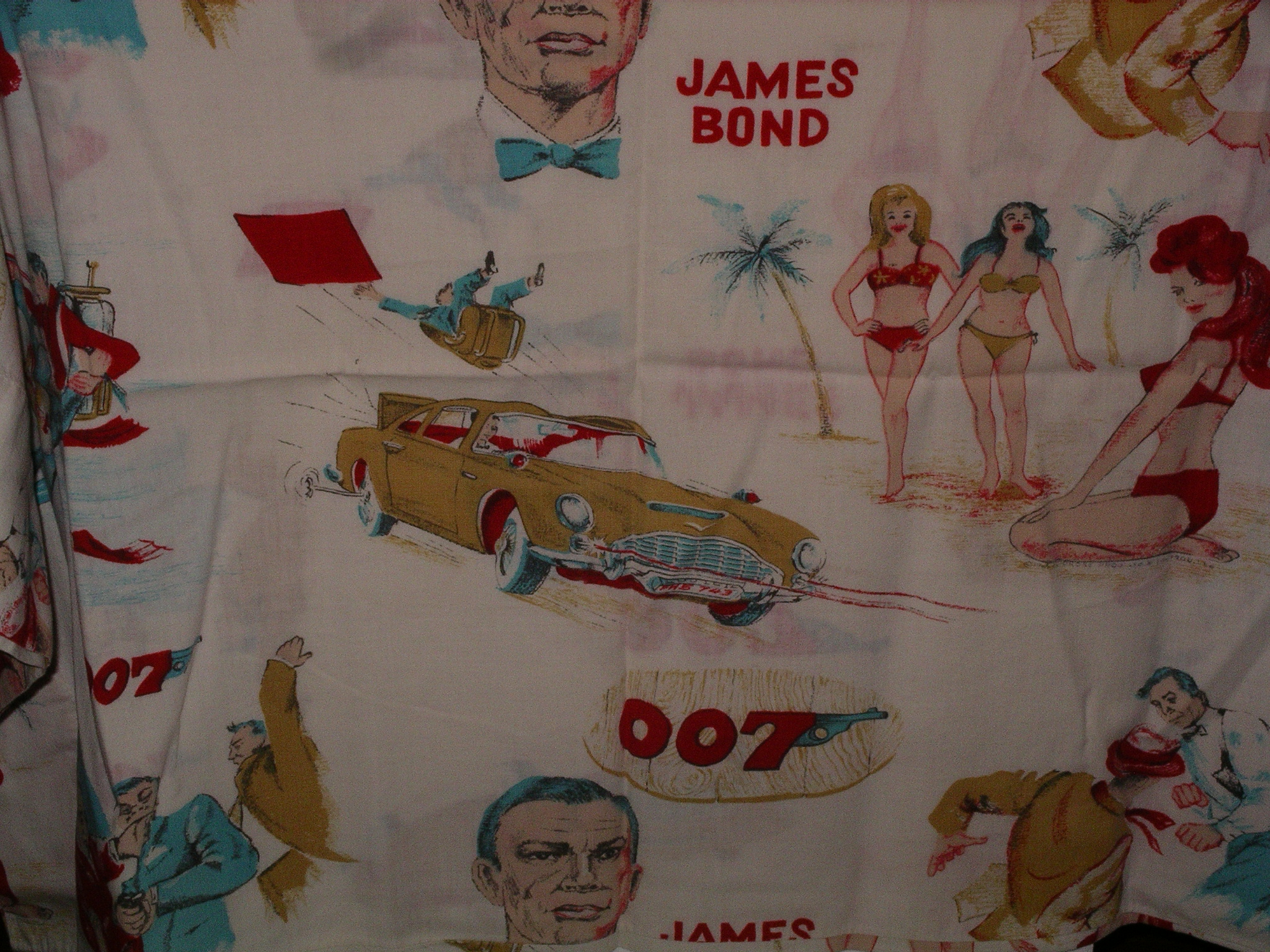 James Bond Pillow case from 1960’s. Rare USA item. Great artwork of Aston.