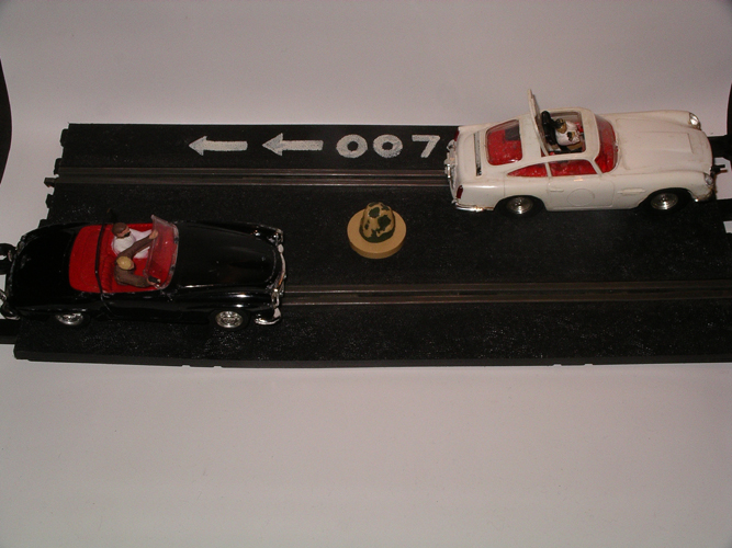 James Bond Scalextrics set from 1960’s. Not mint but good cars, Aston wheel arches are uncut. Please e mail for full details.
