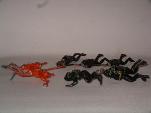 James Bond Frogmen from the Triang Undewater Game (I believe). Six baddies in black, 2 Team Bond in orange.