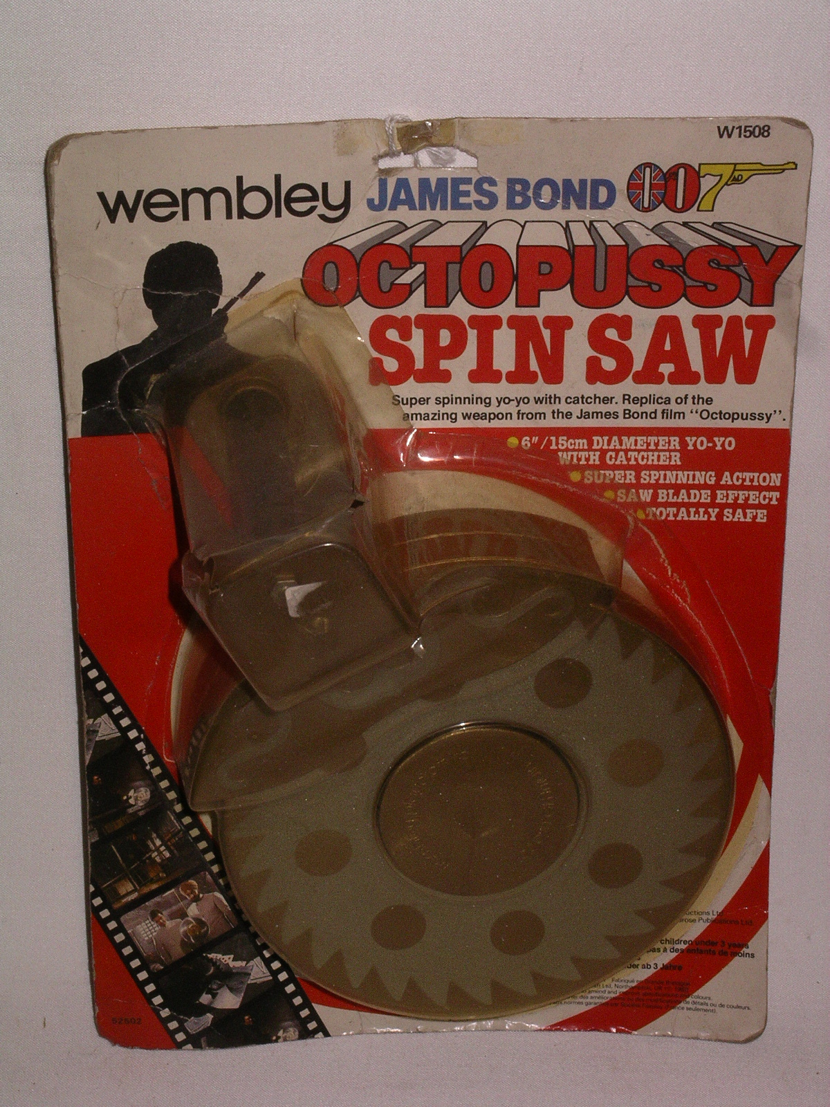 James Bond Octopussy Spin Saw. 1983. Wembley UK. Some splits to packaging but complete and unopened.