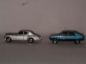 James Bond PROTOTYPE Matchbox Rolls Royce and Renault from A View to a Kill. Resin models made as working models/samples by Matchbox.