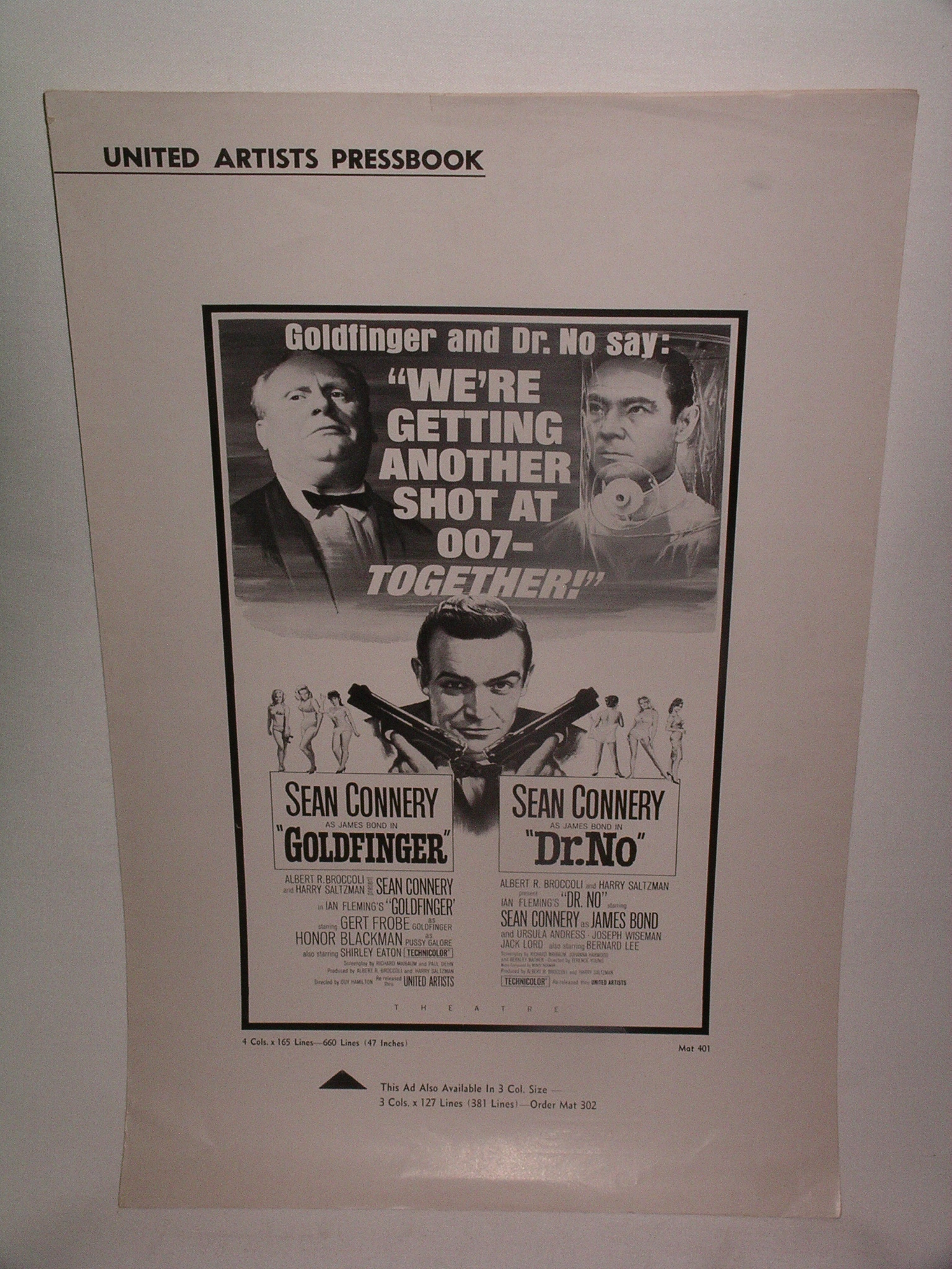 James Bond Dr No and Goldfinger double bill Pressbook. USA. 1960’s. 6 pages.