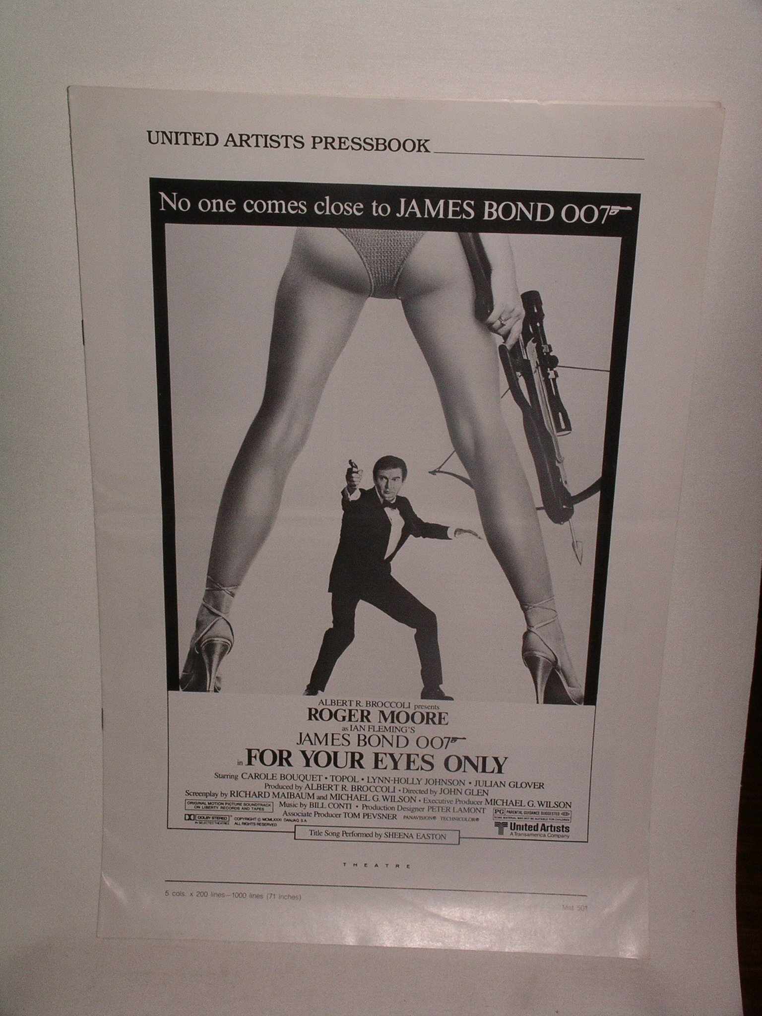James Bond For Your Eyes Only Pressbook. 1981. USA. 8 Pages. Trade distribution only.