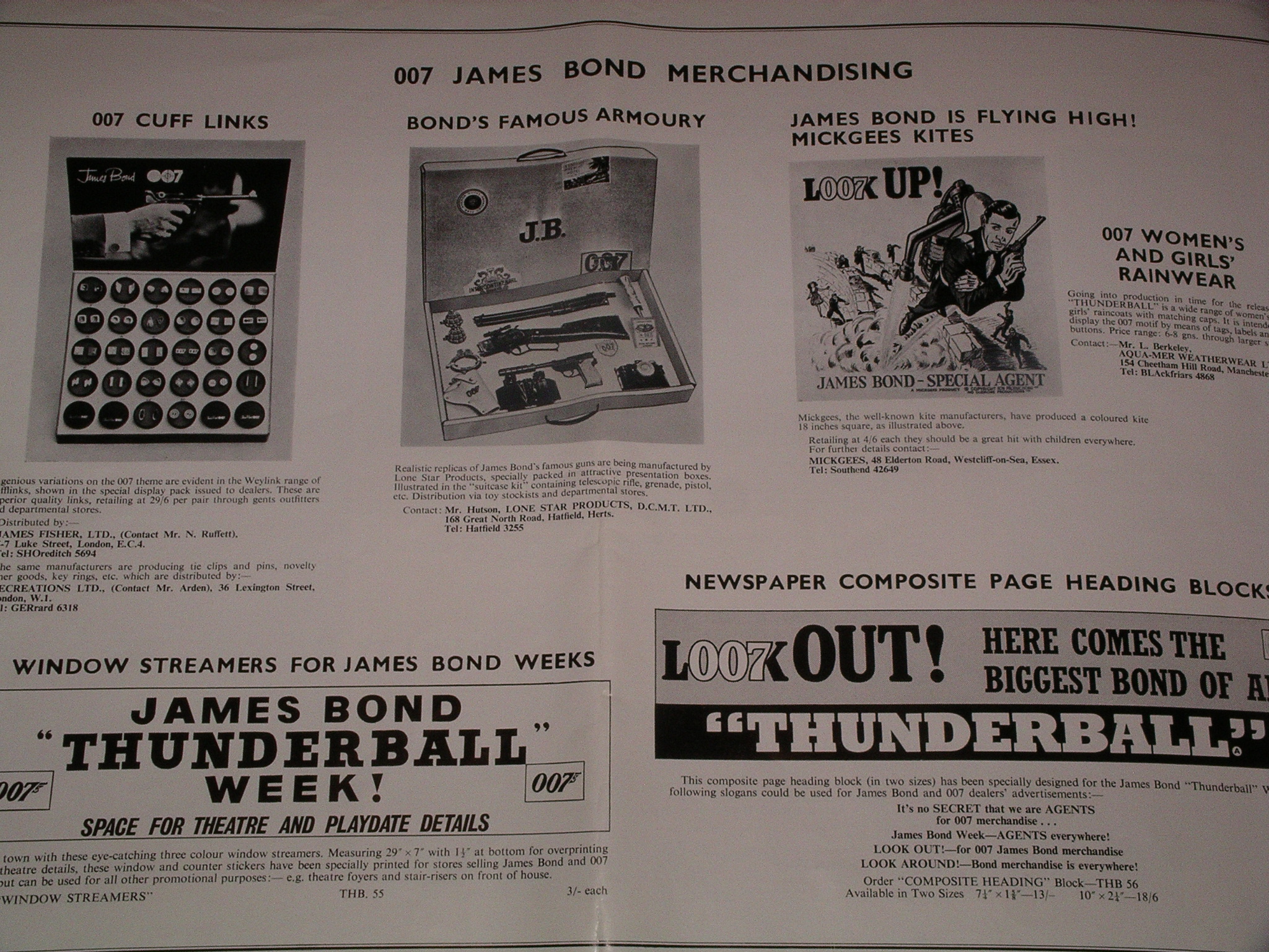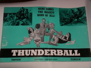 James Bond Thunderball colour Exhibitors Campaign Book. 1960’s. 20 pages.Hard to find and very desirable as Thunderball was the film when merchandising was planned and heavily pushed.