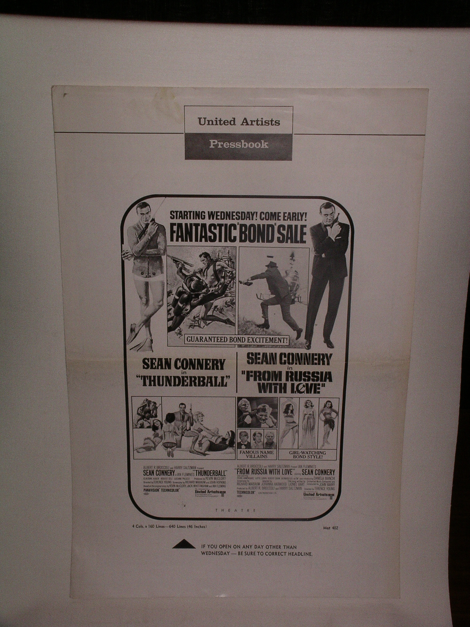James Bond From Russia... and Thunderball Pressbook. 1960’s. 6 Pages. Produced to promote a double bill at the cinema, probably late 1960’s.
